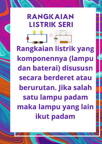 RANGKAIAN LISTRIK SERI Rangkaian listrik yang komponennya (lampu dan baterai) disususn secara berderet atau berurutan. Jika salah satu lampu padam maka lampu yang lain ikut padam